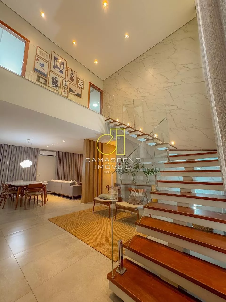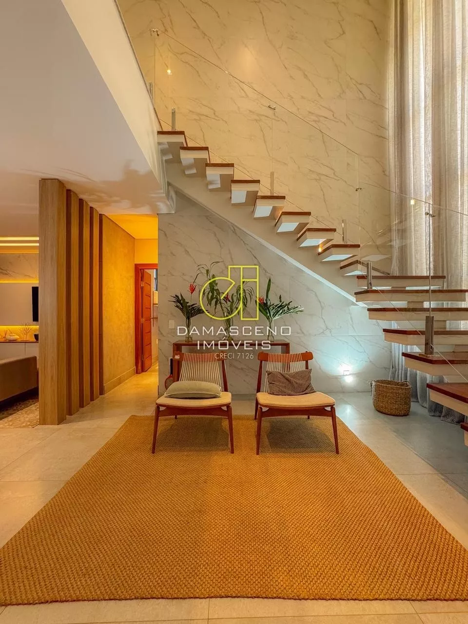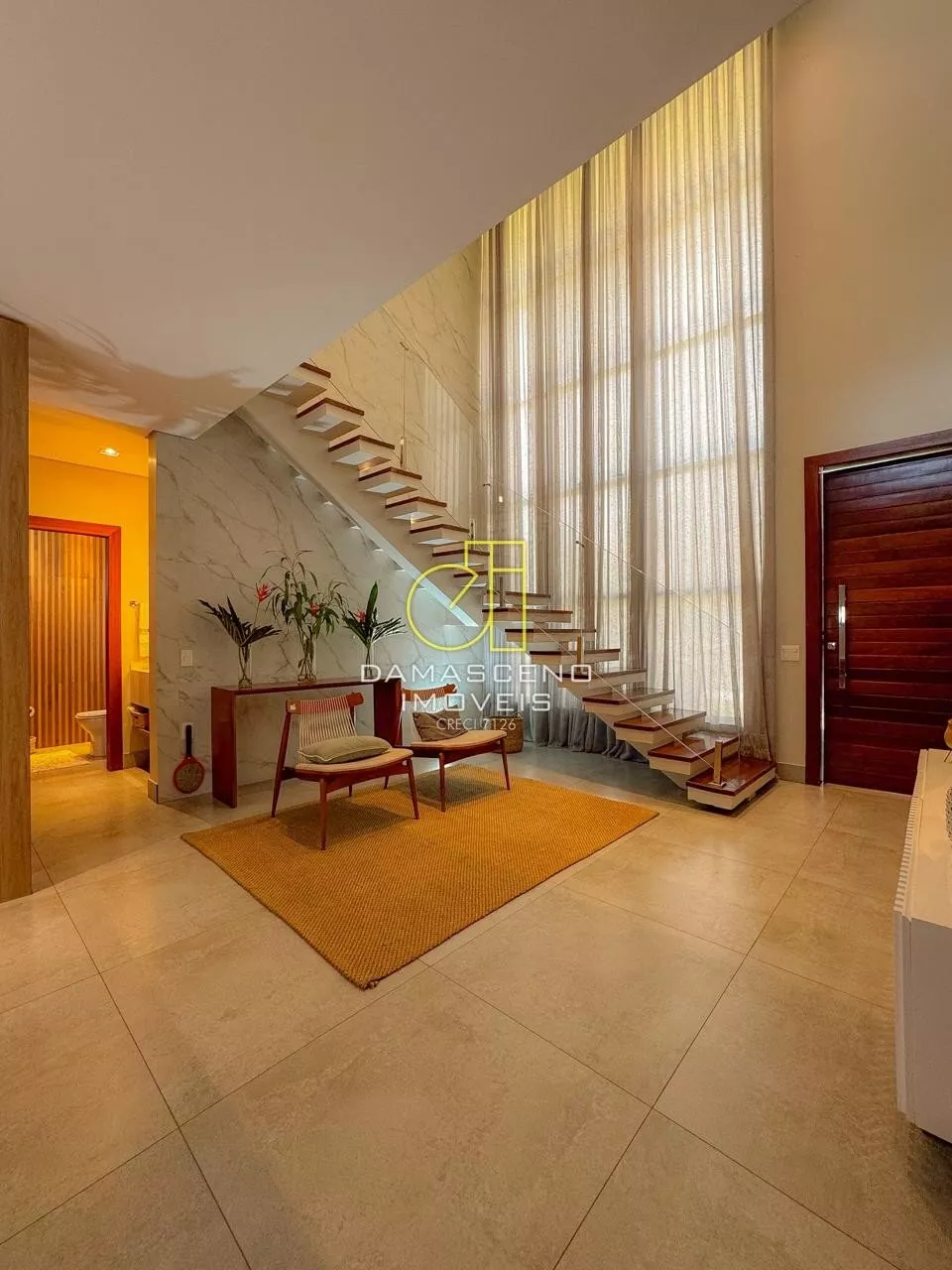 🏠Sala de estar com pé-direito duplo, imponência e iluminação natural abundante;
