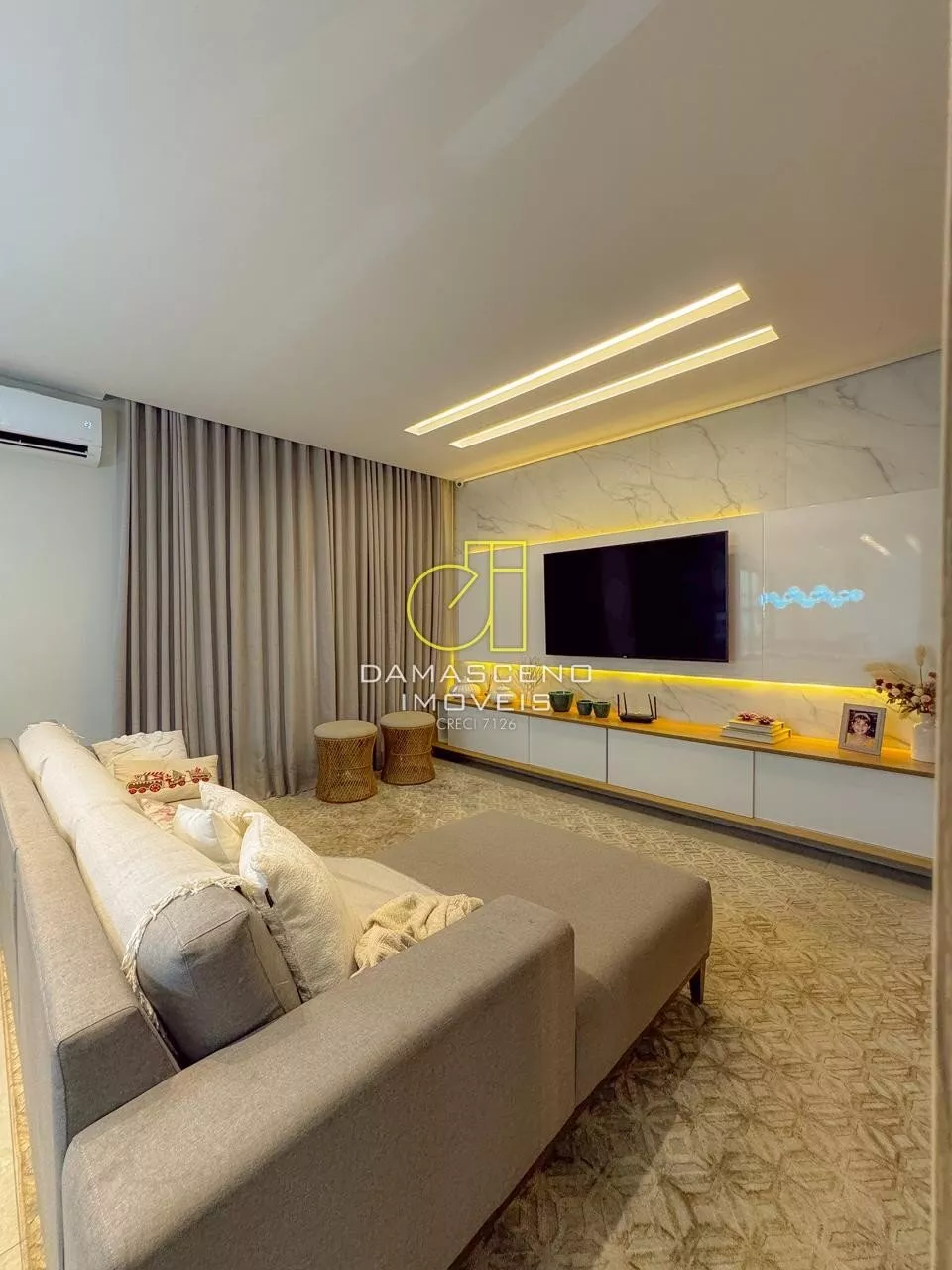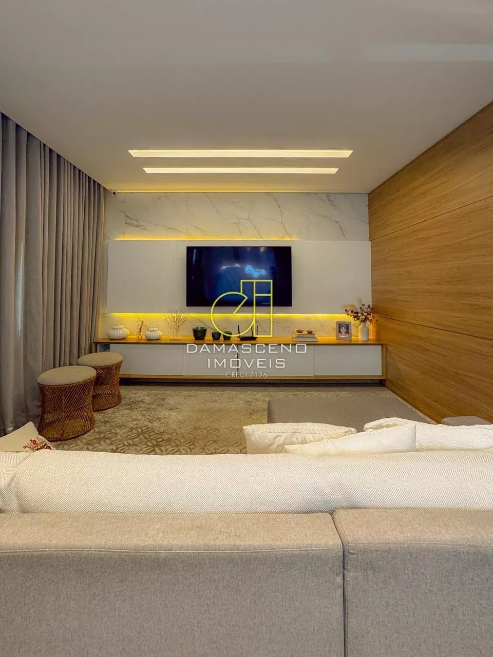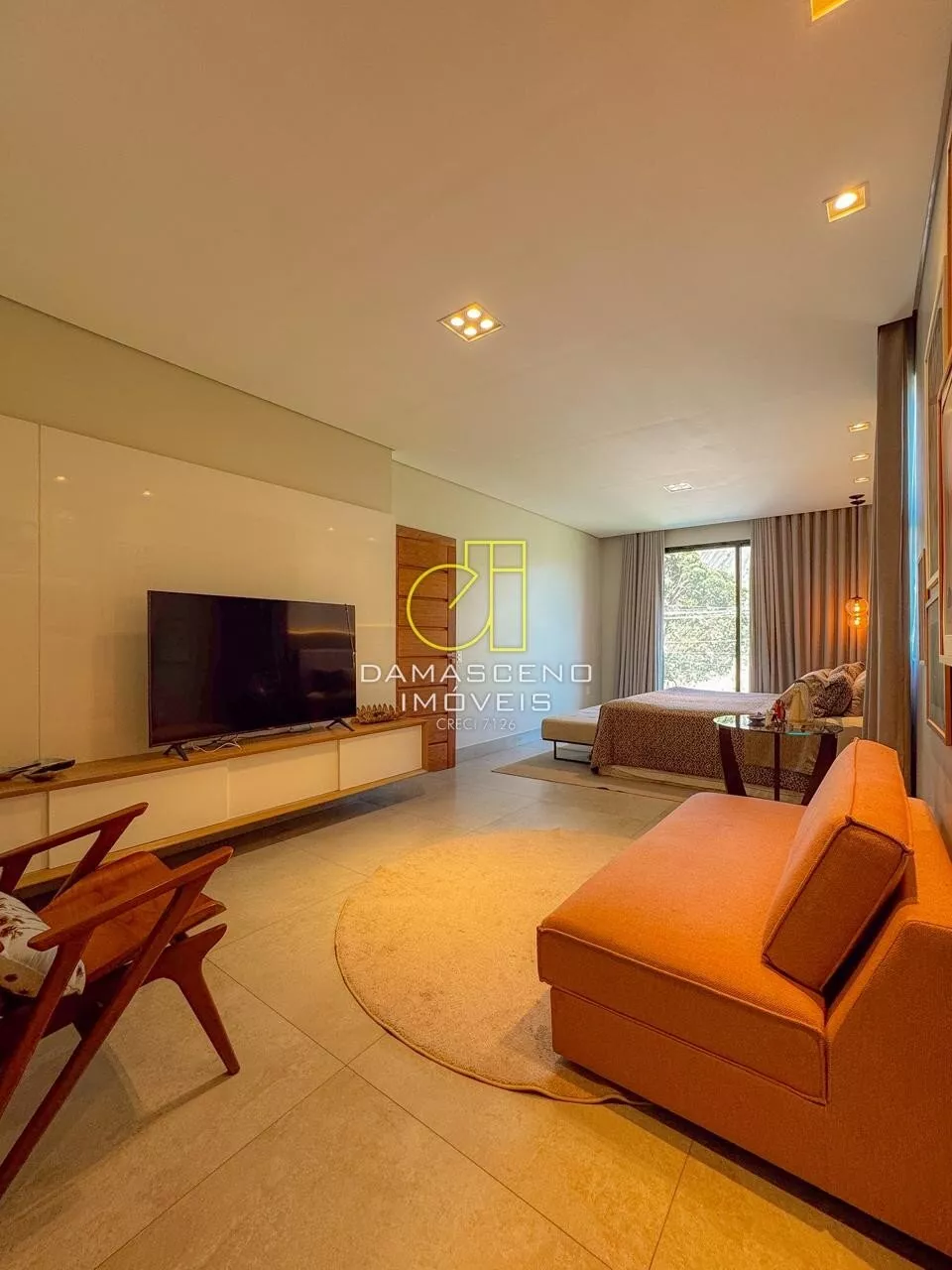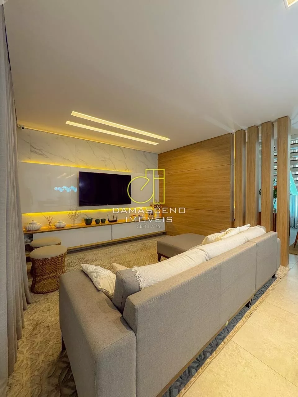 🏠Sala de estar com pé-direito duplo, imponência e iluminação natural abundante;