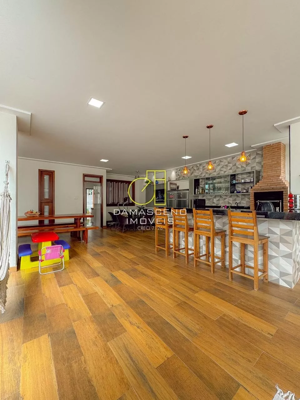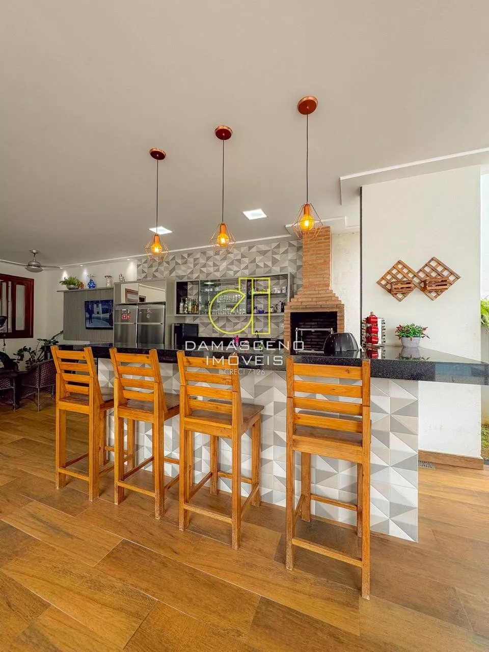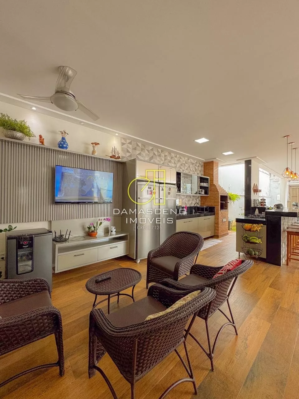 * Área gourmet ampla e completa, com espaço para TV;